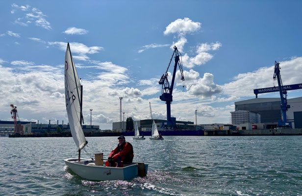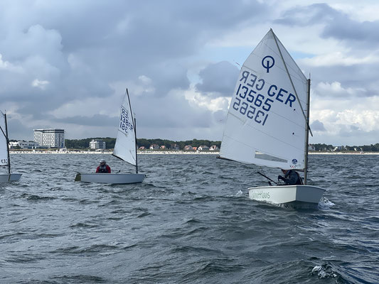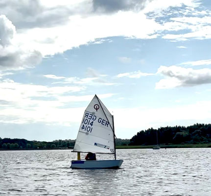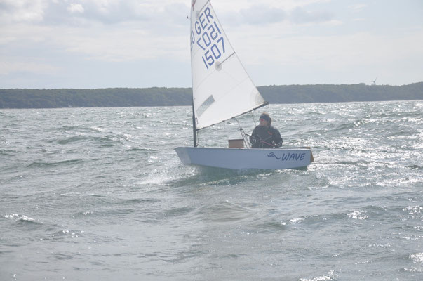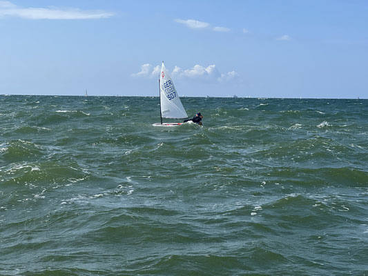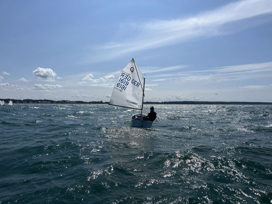 kann er perfekt surfen. Der Wind wehte mit max. 4 Bft. Was wirklich schön ist, dass wir auf der Ostsee so viel Platz zu segeln haben. Ich wünschte mir manchmal, dass der Opti etwas schneller