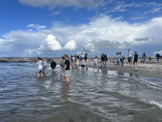 Am Nachmittag nahm der Wind nochmal ordentlich zu, so dass wir mit allen zur Robbenauffangstation gefahren bzw. gelaufen sind - einmal Fähre hin und zurück. Wieder zurück im Hotel hatten alle Kinder noch ein wenig Freizeit und konnte das Taschengeld für Eis und Geschenke ausgeben. Alle beiden Gruppen trafen sich dann nochmal für eine Besprechungs-/Theorieeinheit im Hotel oder an den Booten.