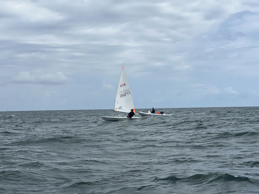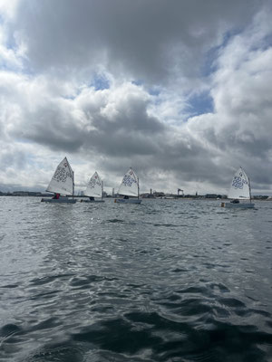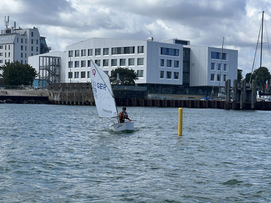 An unserem vierten Segeltag hatten wir viel Wind und ab und zu kam auch die Sonne raus. Wir machten uns zu 09:30 Uhr segelfertig, wiederholten kurz die Inhalte von gestern und fuhren dann raus. Wir durchsegelten große Wellen und sollten verstehen, dass 4-5 Windstärken nicht so schlimm sind und auch Kinder bei diesem Wind segeln können. Es war eine schöne Erfahrung. Dabei stellten doch alle Kinder fest, dass es wichtig ist, einen gut trainierten Körper zu haben. Nur so kann man richtig aktiv segeln. Am Nachmittag hatten dann einige Kinder leider keine so große Lust mehr, aber wir sind trotzdem nochmal rausgegangen und haben ordentlich die Wellen "abgesegelt". Wir sind noch fast drei Stunden gesegelt - Kreuzen, Abfallen, Wenden, Halsen, Anluven - alle Mannöver eben. Am Ende gab es noch zwei kleinere Rennen mit den YCBG-Kindern. Wahrscheinlich wird morgen so viel Wind sein, dass wir kein Wassertraining mehr machen können, aber das schauen wir uns morgen genauer an. Feststellung des Tages: Auch leichtere Kinder können gut und sicher bei viel Wind segeln. Ich bin sehr stolz und zufrieden.