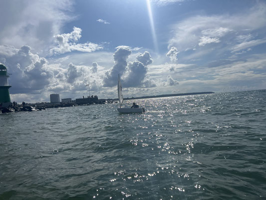 Nach der wohlverdienten Mittagspause ging es nochmal raus. Der Wind frischte zwischendurch kurz auf und wir konnten wieder gut segeln. Die Sicht auf der Ostsee hatte etwas mystisches.