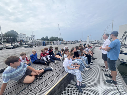 Danach ging es auf einer sehr langen Vorwind (40min) zurück in den Hafen. Was soll ich sagen: alle Kinder waren wieder sehr hungrig. Bei der Nachbesprechung ging es nochmal um Regeln, Strafen,