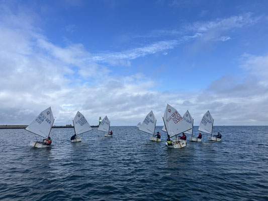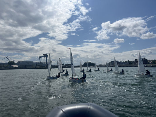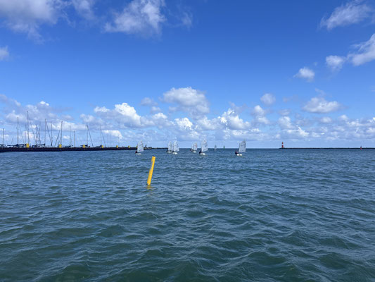 Am Vormittag standen Startübungen auf dem Plan … hoch auf die Linie, Startuhr checken, wer hat Vorfahrt …woher kommt der beste Wind. Viele Dinge sind einfach zu beachten … auf der Ostsee kommen noch Wellen und Strömung dazu. Aber alle B‘s haben sich sehr gut geschlagen. Ab in den Hafen - Mittag, kleine Pause und dann ging es auch schon auf los zur zweiten Einheit.