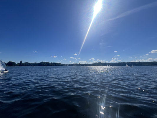 waren wie auf dem Müggelsee - einfach nur schön. Wir haben viele Kreuzübungen mit vielen Wenden und Startübungen gemacht. Zum Abschluss des Vormittages haben wir noch "Fangen auf dem Wasser